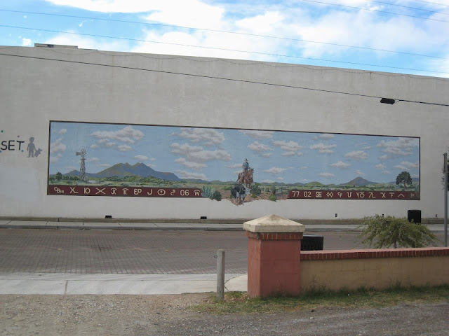 | I have shown this mural before on my blog. I like the ranch/brands at the bottom and the big Texas sky. These murals are all located together....west, north and east. How cool is that? |
